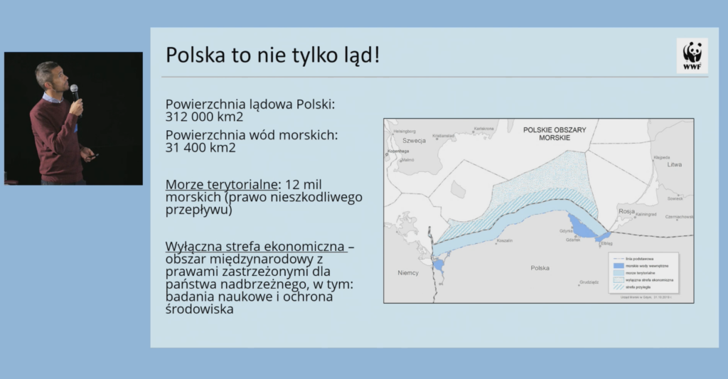 Dr Andrzej Ginalski, geograf, kierownik Zespołu Morskiego w Fundacji WWF Polska, zajmuje się ochroną przyrody od strony społecznej i naukowej oraz – przez kilkanaście lat także jako pracownik Środowiska w Departamentu Zarządzania Zasobami Przyrody w Generalnej Dyrekcji Ochrony Środowiska. Opowiedział o dotychczasowej legislacji unijnej na rzecz ochrony przyrody morskiej i o tym, co mogłoby zmienić NRL. Wyraził zaniepokojenie faktem, że wdrożeniem NRL w zakresie ekosystemów morskich w Polsce ma zajmować się Min. Infrastruktury.